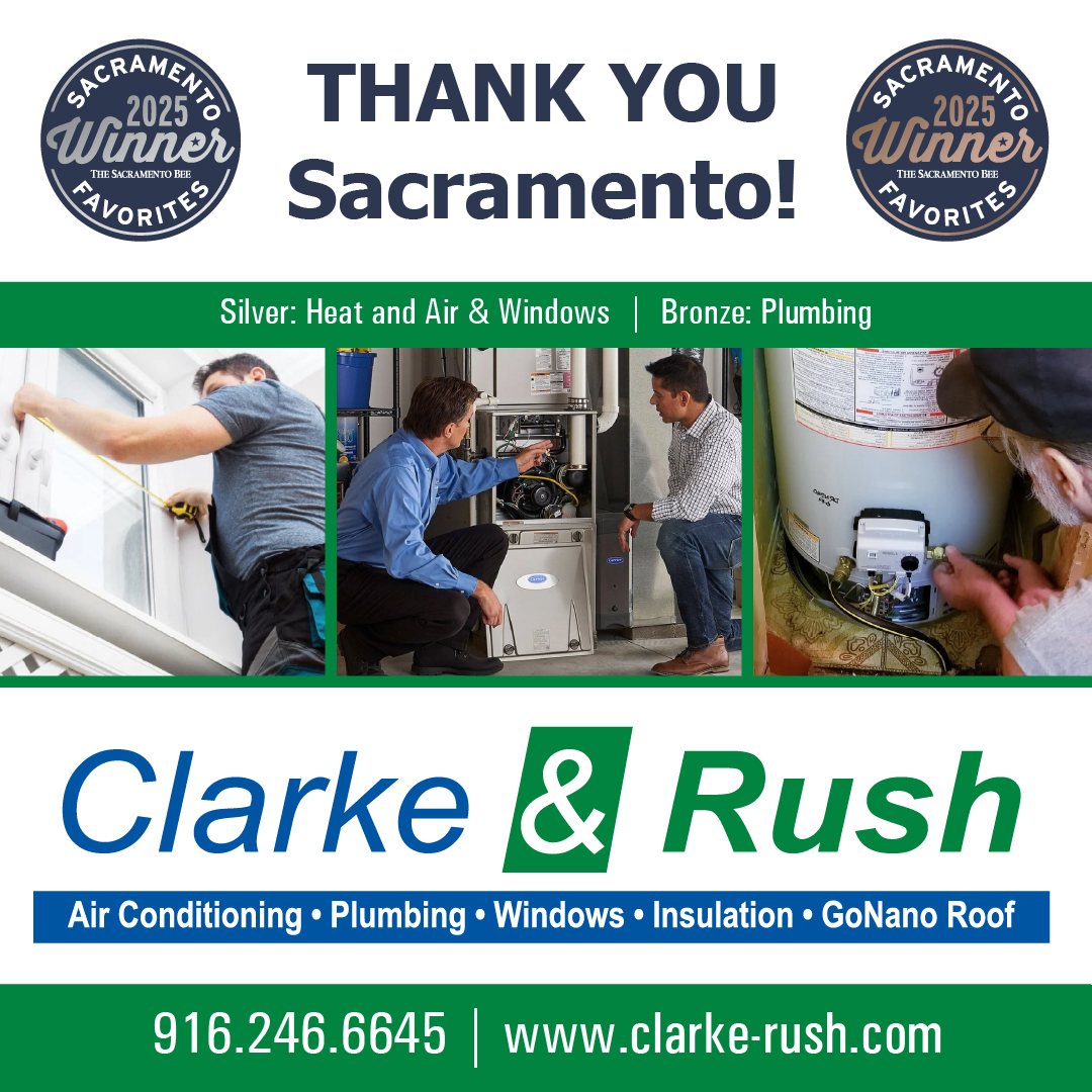 Sacramento Homeowners Vote Clarke & Rush as Sacramento Favorites 2025 Winner in HVAC, Plumbing and Window Company